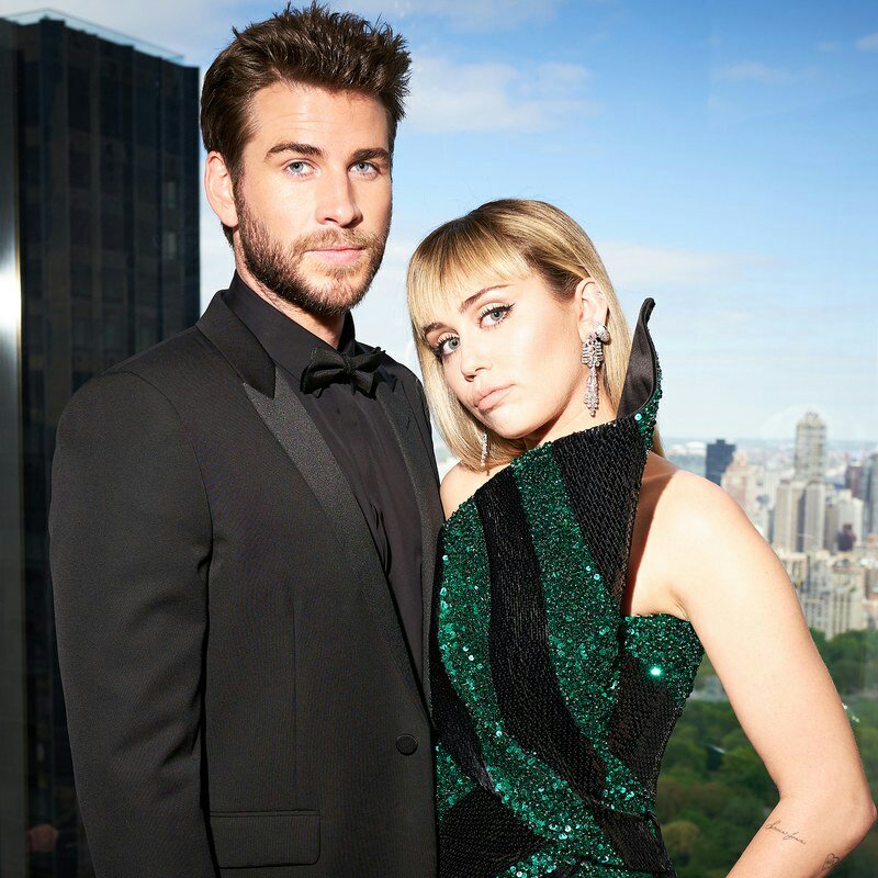 Miley Cyrus in Saint Laurent wearing bulgari and Lorre rodkin jewellery and Liam Hemsworth in saint laurent. This couple did never go wrong on their outfit . I like it !!