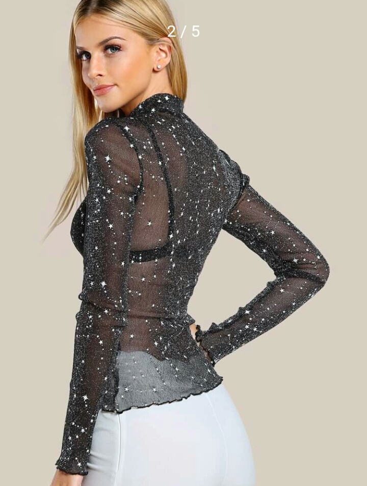 Lettuce edge – Star glitter mesh top – Sheer top (Shein product)