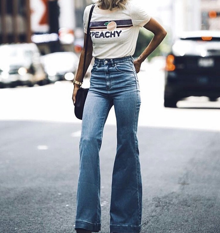 Flared jeans? It’s old style right? But NO it’s still be the one of trends when it comes to jeans. Go with a normal tee or tunic dress and yes with sling bag but the plus point is you can opt any footwear because you can’t see the whole view of your foot,it’s flared right? So no problem !