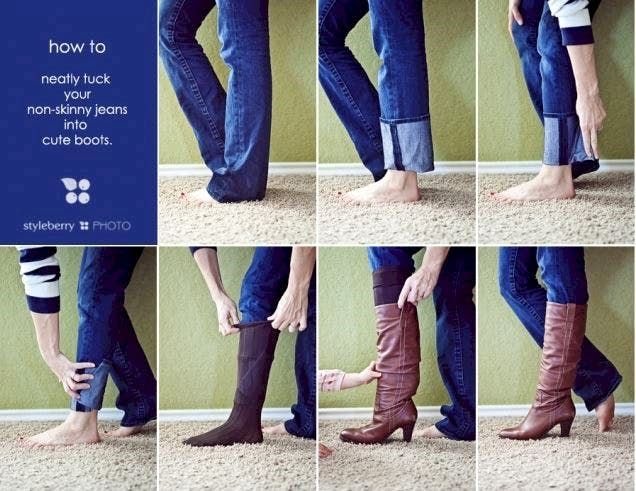 If you want to wear long boots matching with jeans, know this short trick, it’s really helpful and never goes wrong!